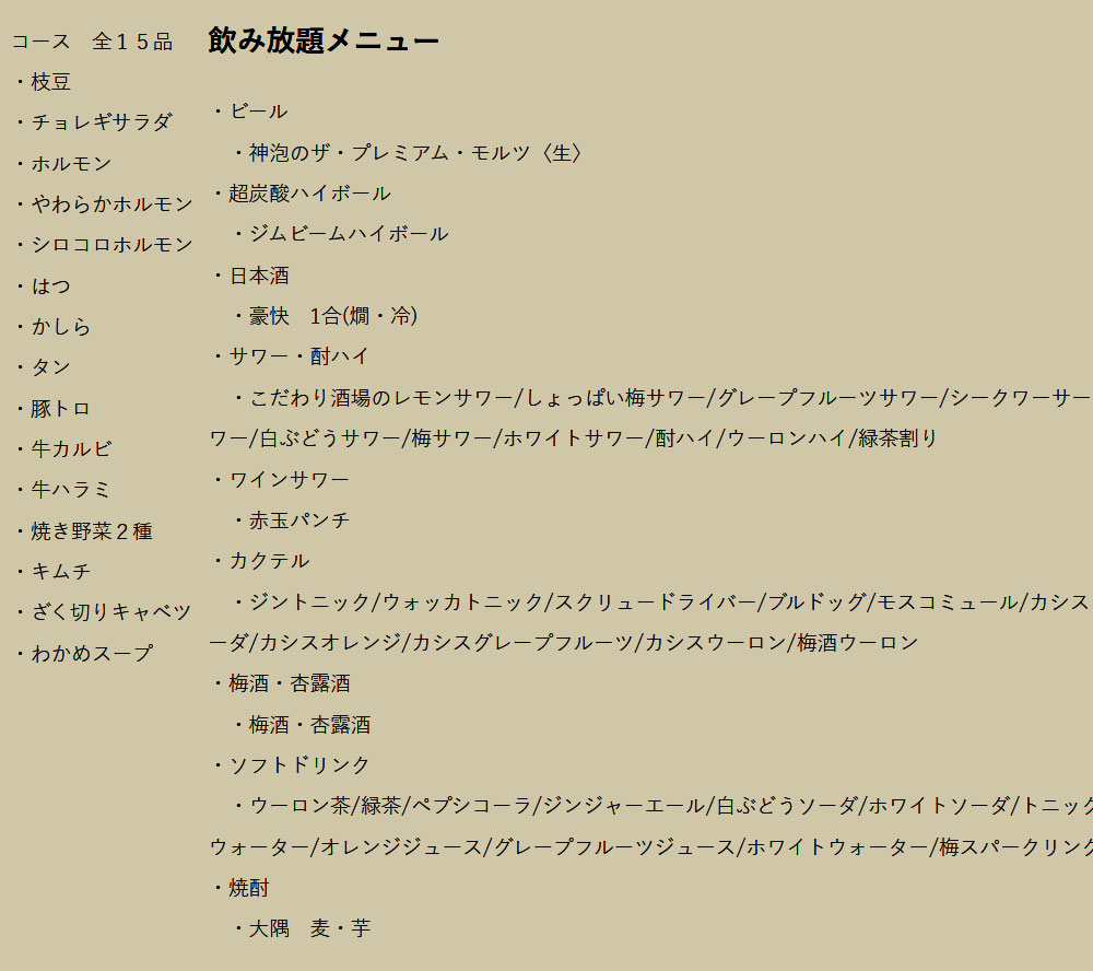 メニューさっき見たけどカルビとかあったけど食った記憶はない。